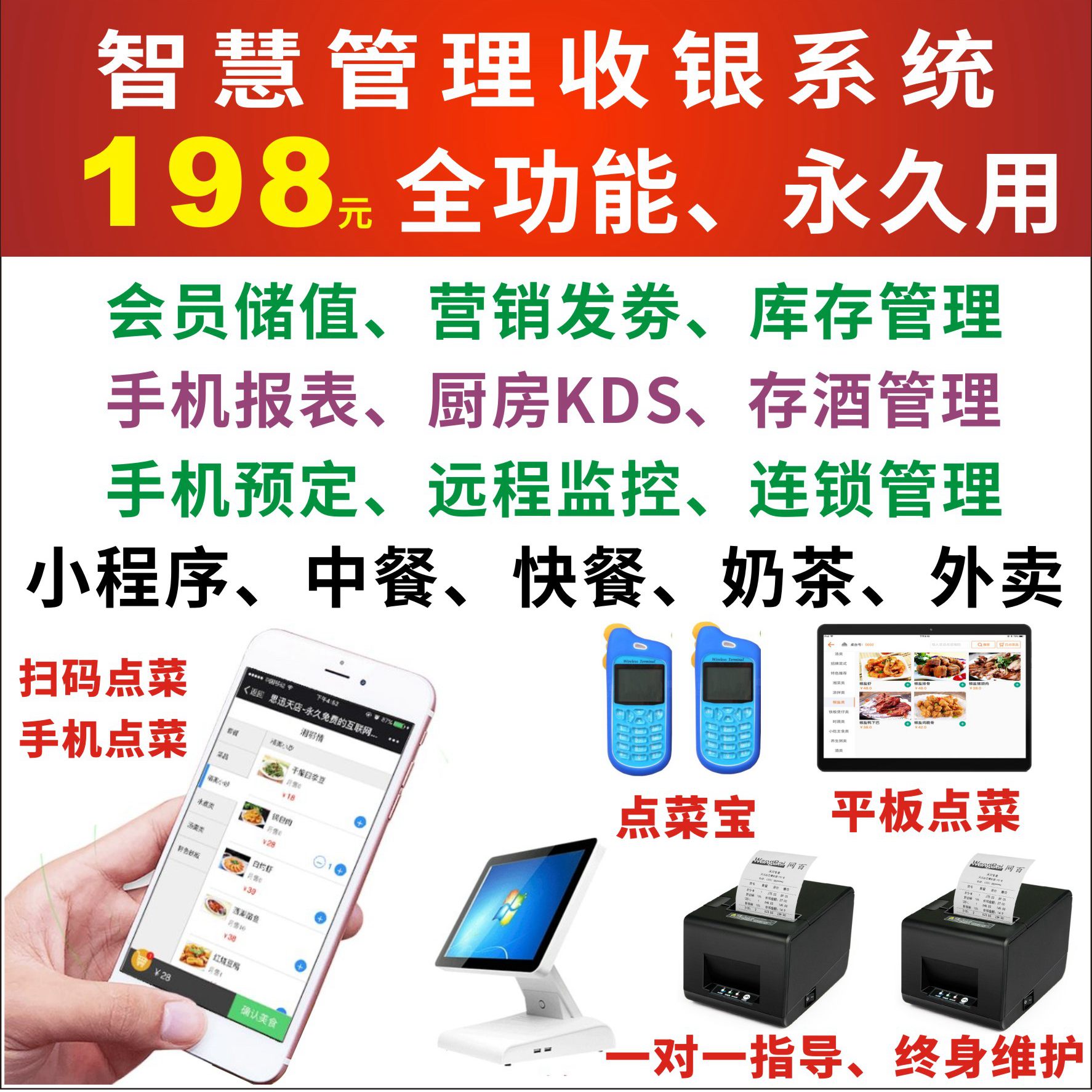 手机扫码二维码点餐点菜餐饮收银管理系统软件收银机奶茶快中餐
