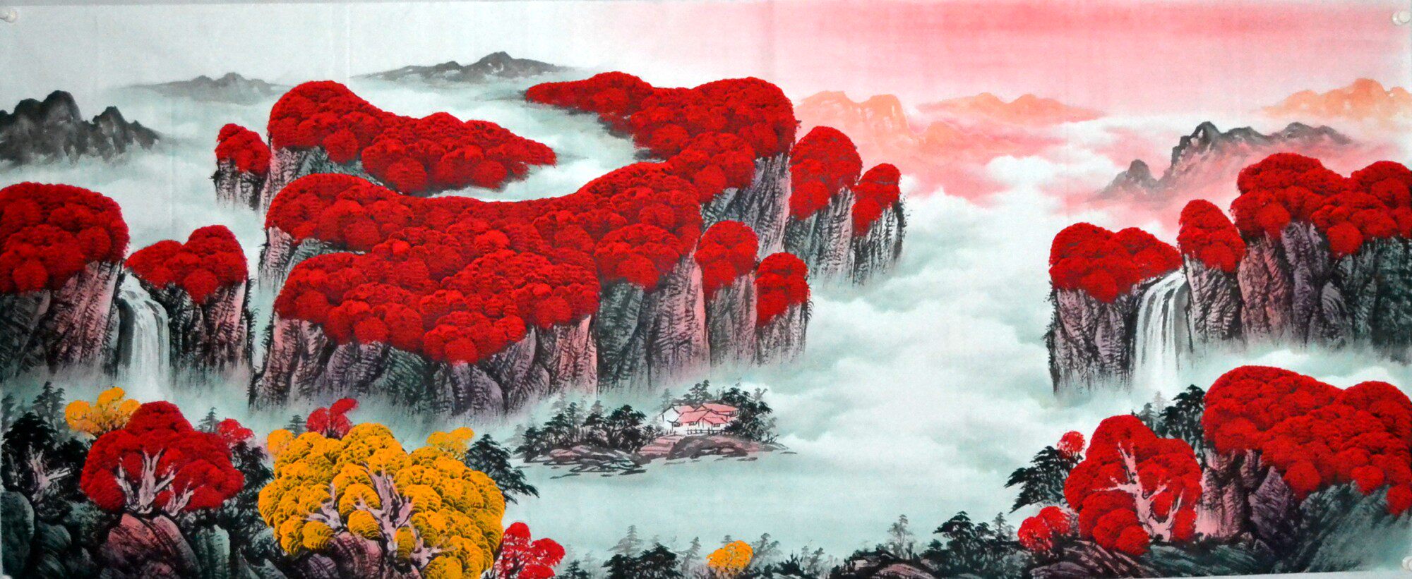 鸿运当头小八尺国画山水字画纯手绘无框横幅客厅装饰风景画心未裱热门设计联盟服务商