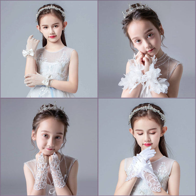 &儿童婚纱童礼服手套公主女童女孩演出礼仪舞蹈花生日超五指白热门设计联盟服务商