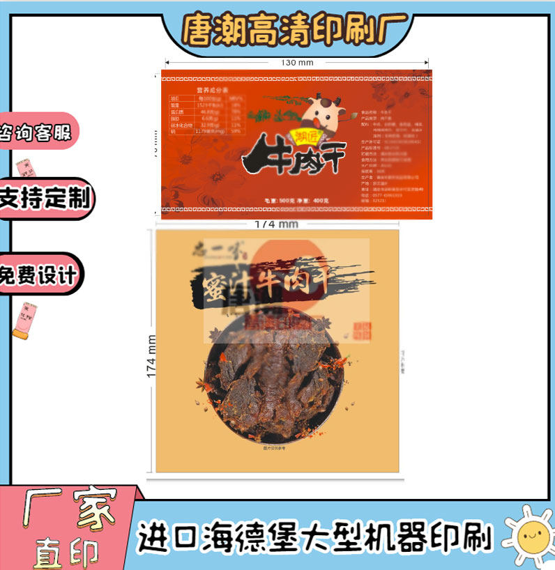 免费设计牛肉干铜版纸不干胶商标贴纸定制香辣猪肉铺绝味包装印刷热门设计联盟服务商